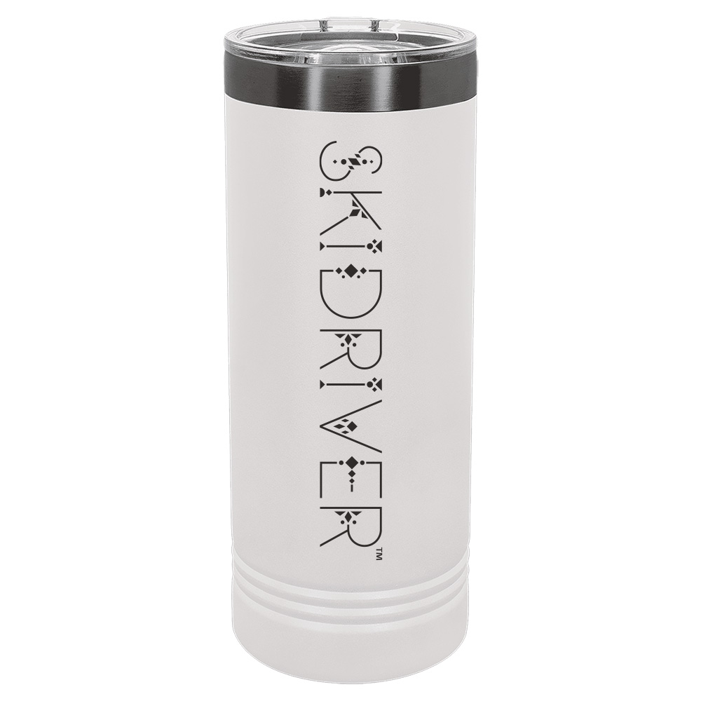 Double wall for hot or cold retention – 22oz Skinny Tumbler with a modern sleek SKIDRIVER logo.